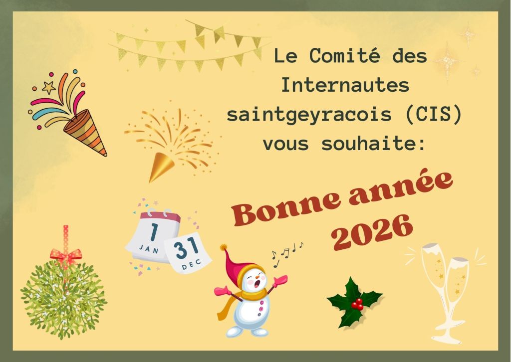 D’autres saintgeyracois, Gaby, Philomène, David, vous souhaitent une année 2026 chaleureuse et amicale dans la langue parlée par leurs parents respectifs: