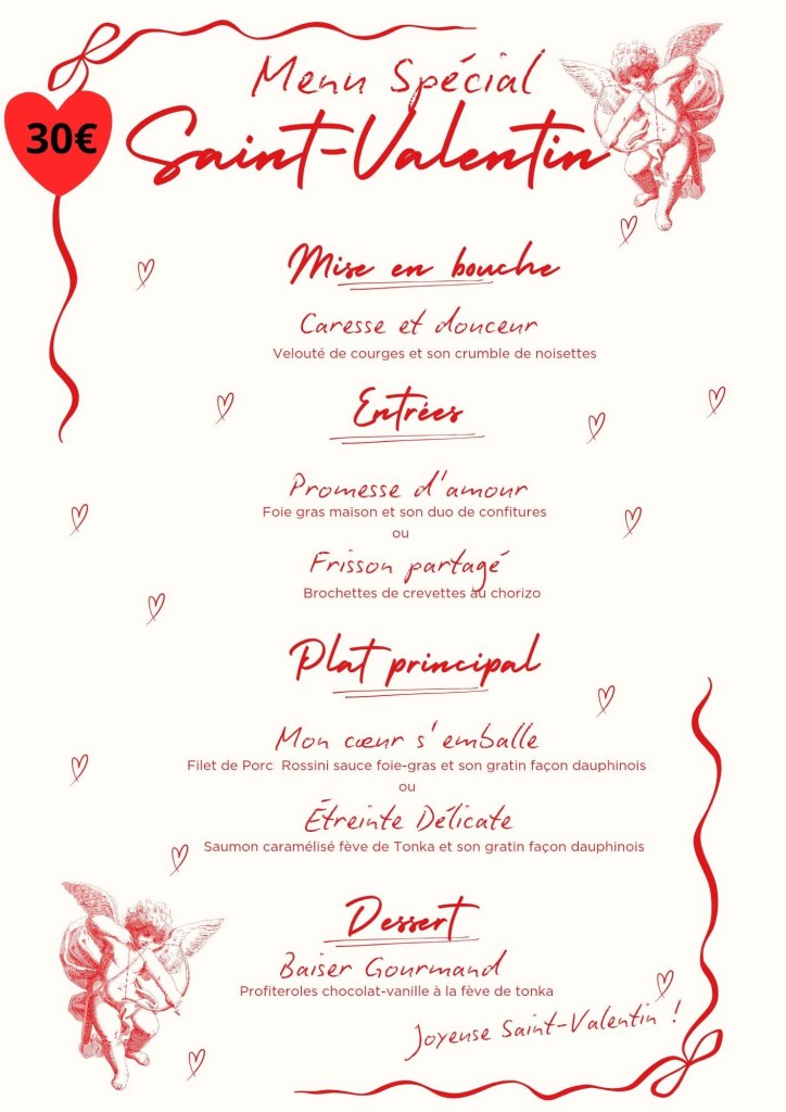 Pour célébrer l’amour comme il se doit, nous vous avons préparé un menu plein de douceur, de gourmandise et de belles saveurs à partager. Une soirée placée sous le signe du plaisir, de la convivialité et des petits bonheurs à deux.