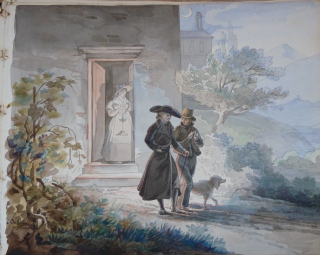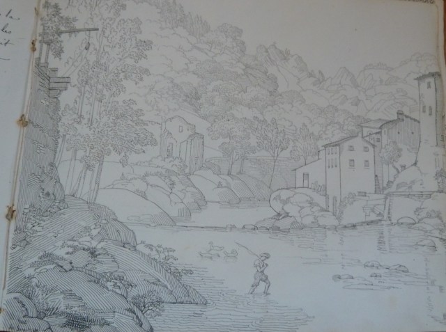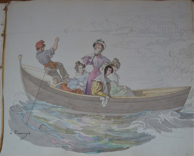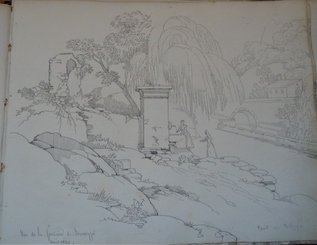 Certaines de ses aquarelles ont pour sujet Elisa, dans toutes sortes d’activités. Il est vrai qu’à ce moment là, Elisa était morte prématurément et qu’il était très malheureux. On y trouve également ce qu’il a appelé « fragments littéraires » dans lesquels il raconte une partie de sa vie, ses promenades en Toscane dans la région de Séravezza. Il fait également son portrait et avoue que si il n’avait pas été peintre il aurait voulu être médecin ou prêtre. Tout ceci écrit à la plume d’une écriture fine, régulière et particulièrement élégante, dans un français merveilleux et sans rature.