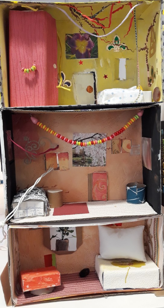 Des productions d’enfants: portraits, ponts et fenêtres, arbres, maisons de poupées
