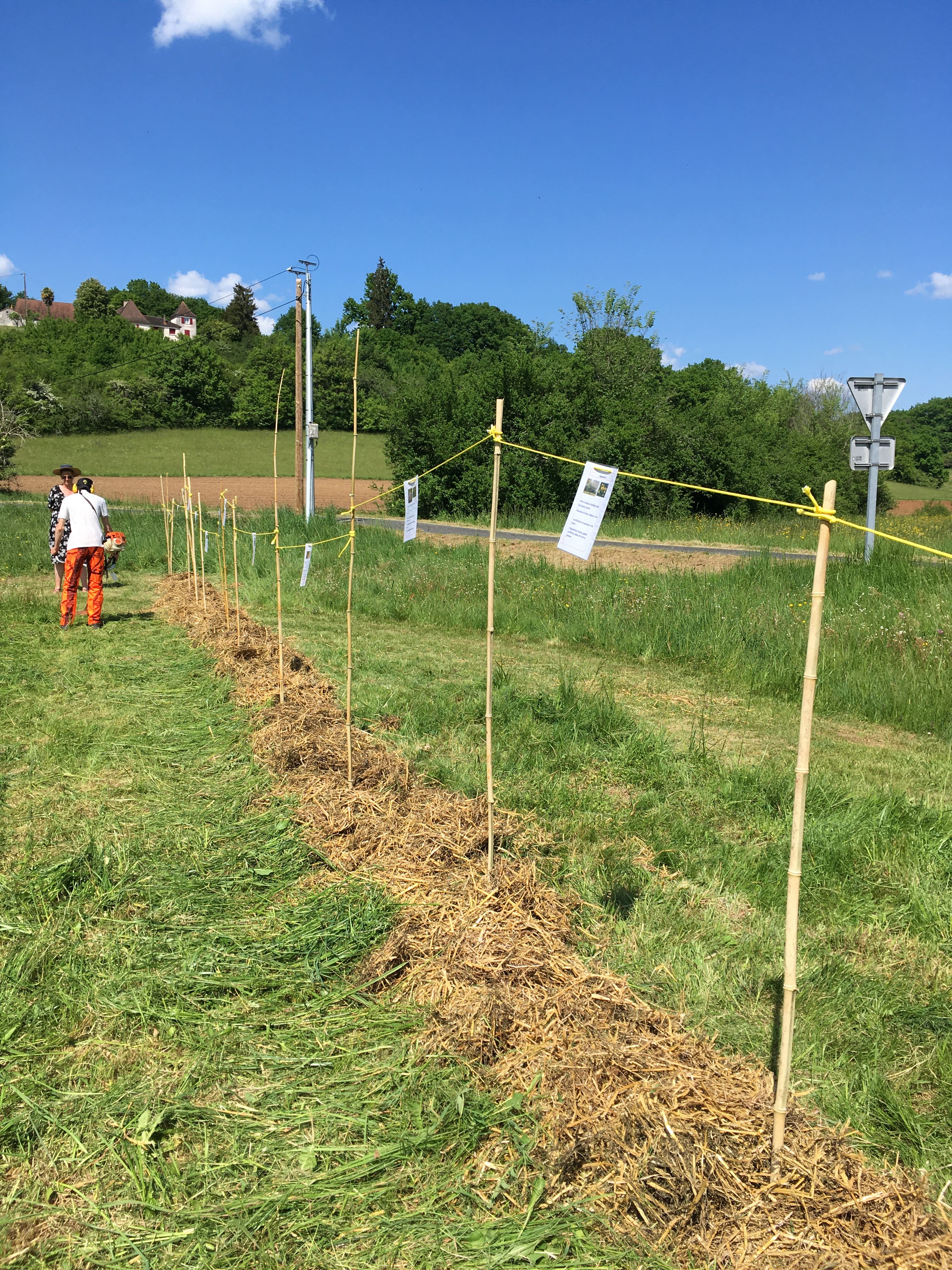 Le temps et les matériaux ont manqué pour finir la « haie » et le tour des « arbres ». L’association recrutera les bonnes volontés pour un petit chantier participatif. L’appel aux dons de paille et de cartons est renouvelé !