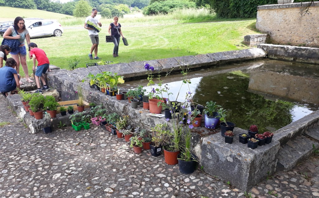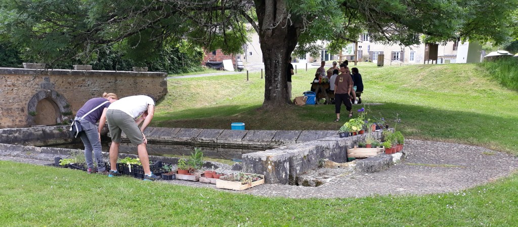 En face du chapiteau au bord de l’ancien lavoir, se déroulait la traditionnelle bourses aux plantes, très appréciée!