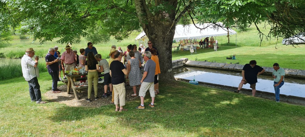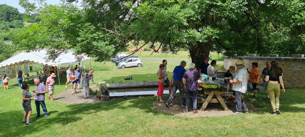 Vers 16h, les visiteurs ont pu déguster les desserts fruités offerts par les organisateurs et les visiteurs. Tout le monde s’est régalé sous le tilleul près de l’étang…