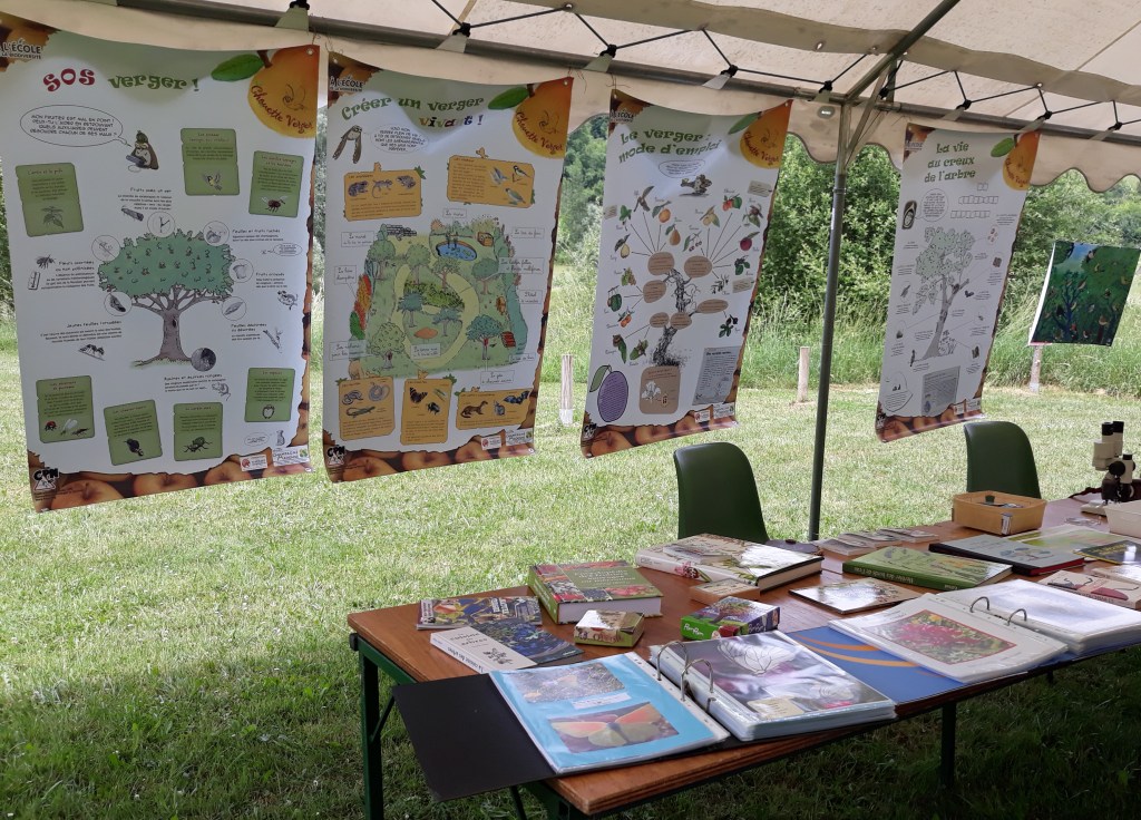 Des panneaux d’information, tapissaient le fond du chapiteau, apportant des explications sur les vergers.