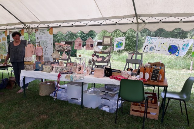 Toujours sous le chapiteau, on pouvait admirer le stand de Lise, qui confectionne avec grand art et beaucoup de goût, toutes sortes d’articles et objets artisanaux