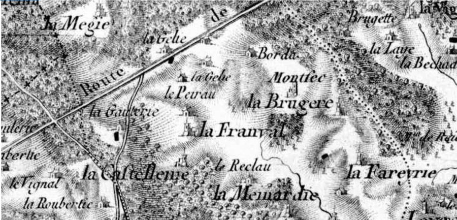 Image mise en avant : extrait de la carte de Belleyme n° 23 secteur de La Gélie à Saint-Félix-de-Reilhac.