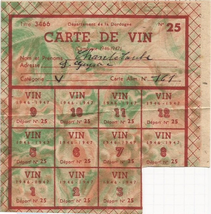 La pénurie concernait aussi des produits qu’on estimerait aujourd’hui non indispensables: le tabac et le vin. En 1946, une carte de tabac a été délivrée et, en 1947, une carte de vin.