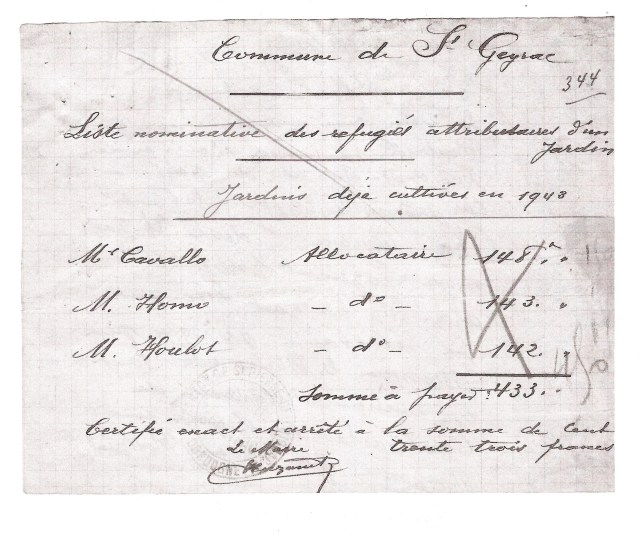Les réfugiés nombreux dans la région ont des difficultés de ravitaillement. Les autorités les encouragent à cultiver un jardin potager. Des cartes de jardinage sont établies; elles donnent droit à des semences, à du matériel pour jardin. « Les pouvoirs publics incitent également au ramassage des fruits sauvages (marrons d’Inde, glands, faînes, châtaignes, cynorrhodons, …) »1 .
