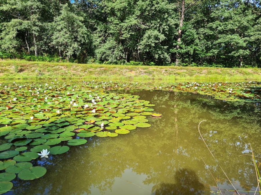Photo en avant-plan: le lac Peiro dit lac aux nénuphars à St Geyrac