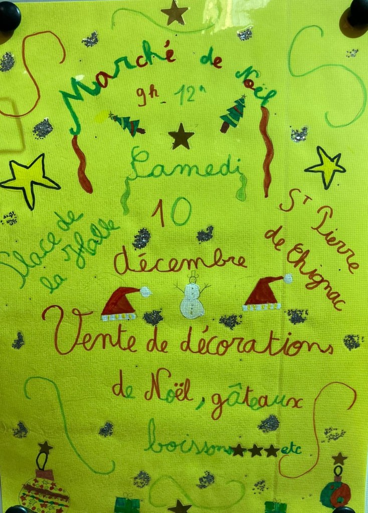 Les élèves vendront à cette occasion des objets (décorations de Noël), des gâteaux et des boissons.