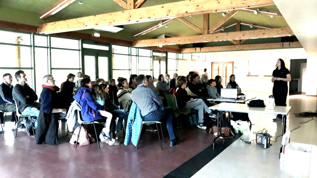 A 18h 30 un peu plus d’une quarantaine de participants ont assisté dans la salle des fêtes de Saint-Geyrac à une conférence, menée de façon très pédagogique et interactive par Amandine, avec le support d’un diaporama riche en enseignement et fort bien agencé. Les enfants ont dominé dans l’interactivité, en proposant des réponses diverses et variées aux « énigmes » soumises par la conférencière.