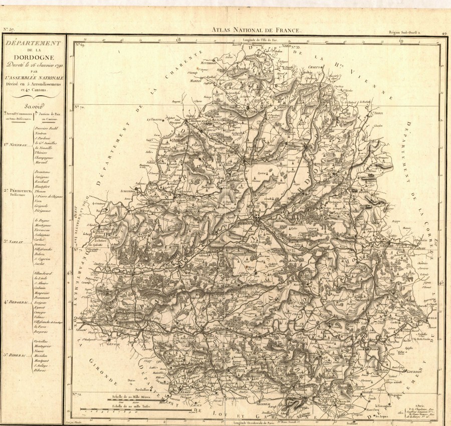 Image mise en avant : Département de la Dordogne décrété par l’Assemblée Nationale-Atlas national de France – AD