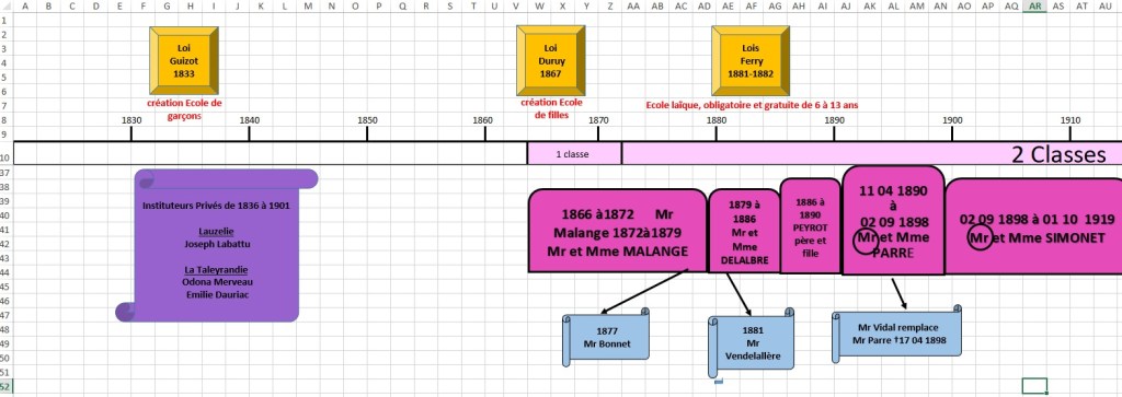 Photo mise en avant : La classe unique de Saint Geyrac 1976-1977. Au-dessus des tableaux, les enfants avaient créé une frise historique racontant l’Histoire de la Commune.