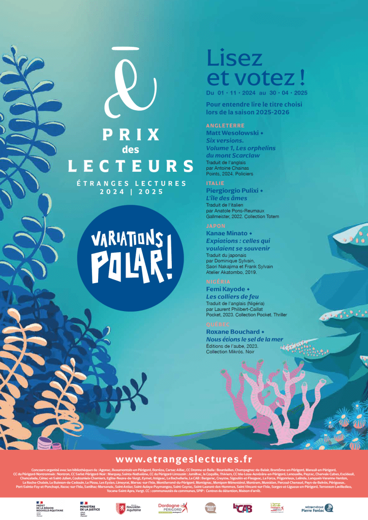 N’hésitez pas! cette année les 5 œuvres sont des polars: pour voter fin avril 2025, il suffit d’en avoir lu 3!