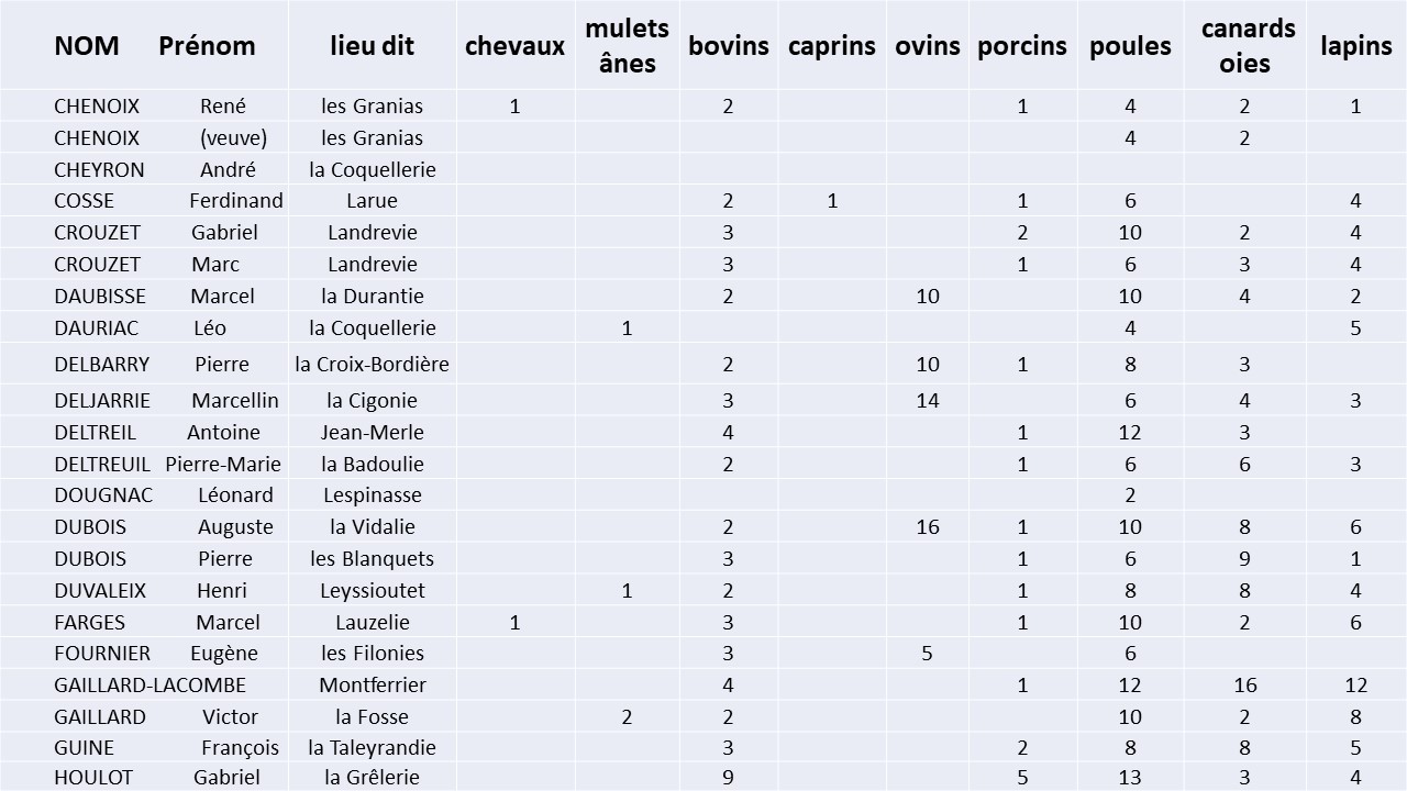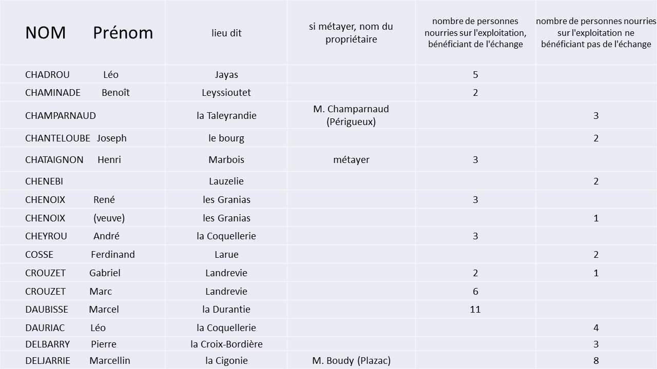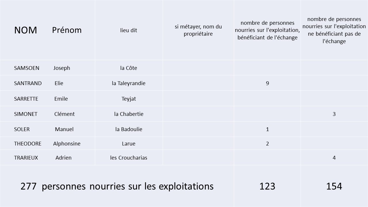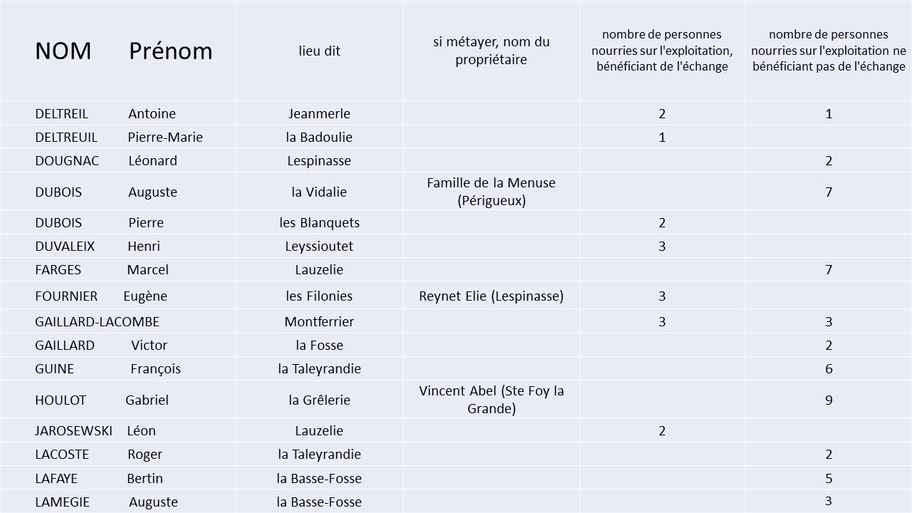 • LISTE des PAYSANS pratiquant l’ECHANGE à Saint-Geyrac en 1944