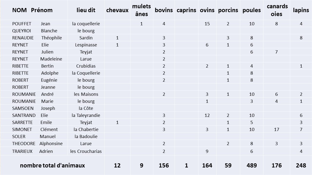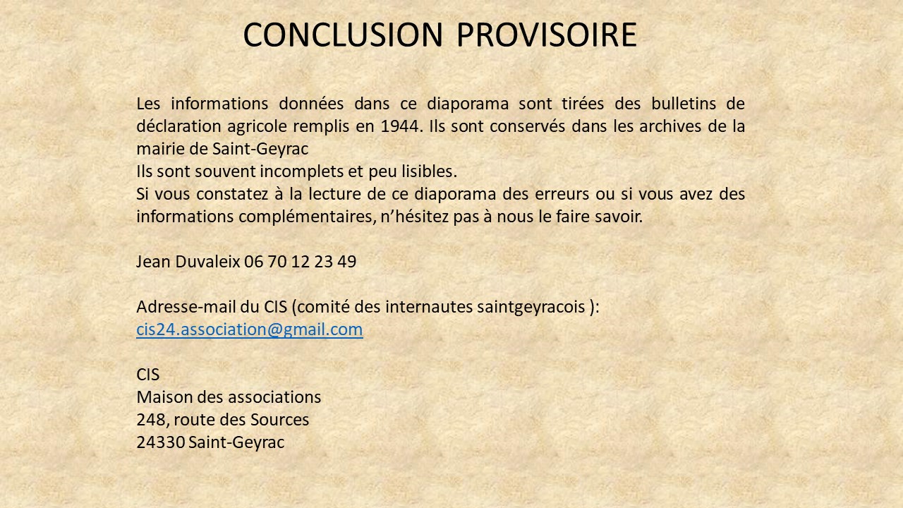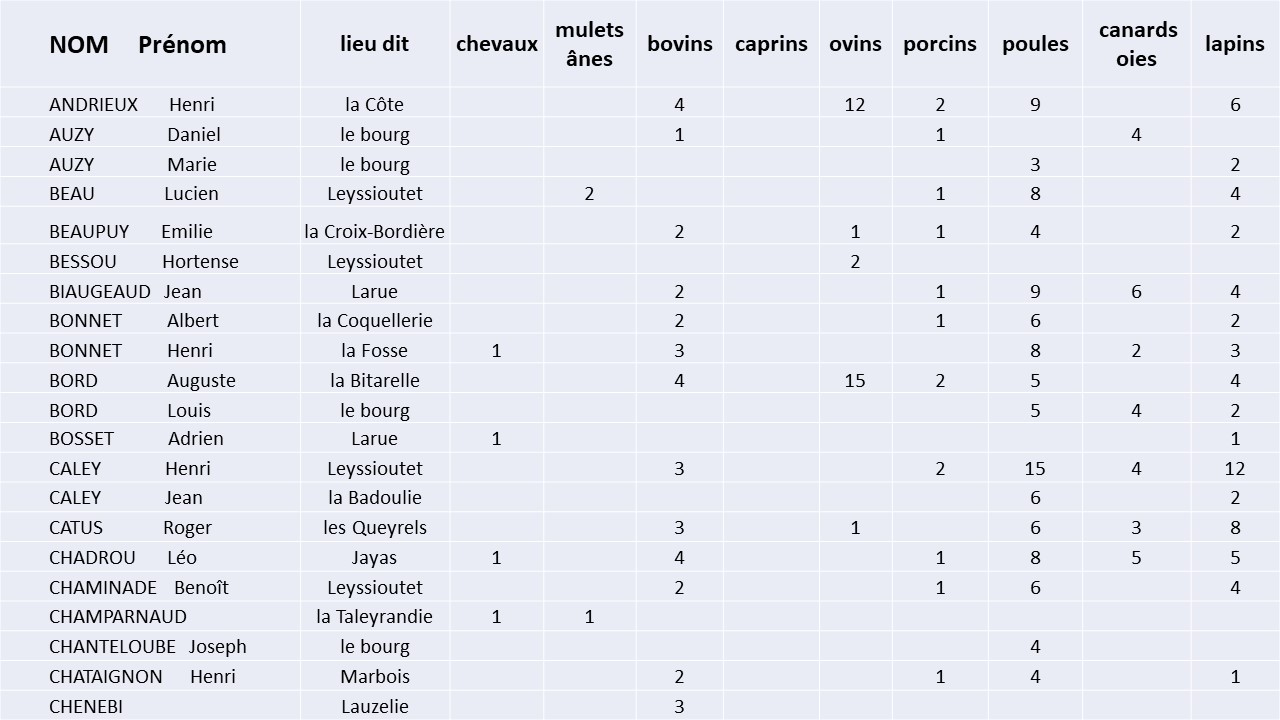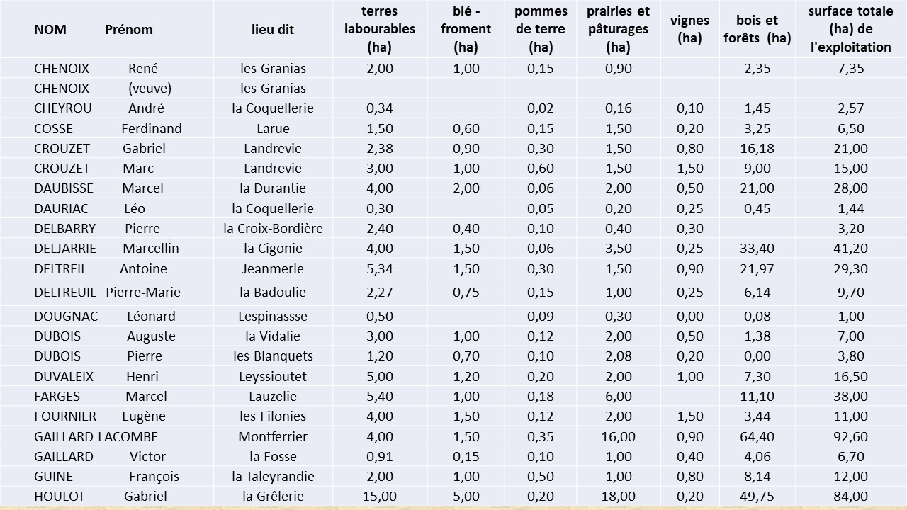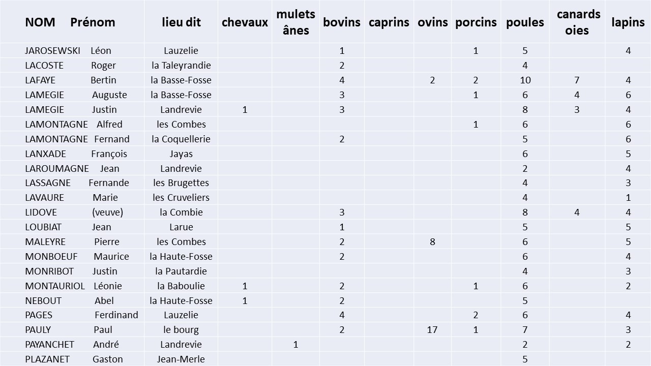• LISTE des PAYSANS pratiquant l’ECHANGE à Saint-Geyrac en 1944
