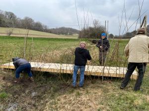 Elaboration du pont en osier vivant zone humide de St Geyrac