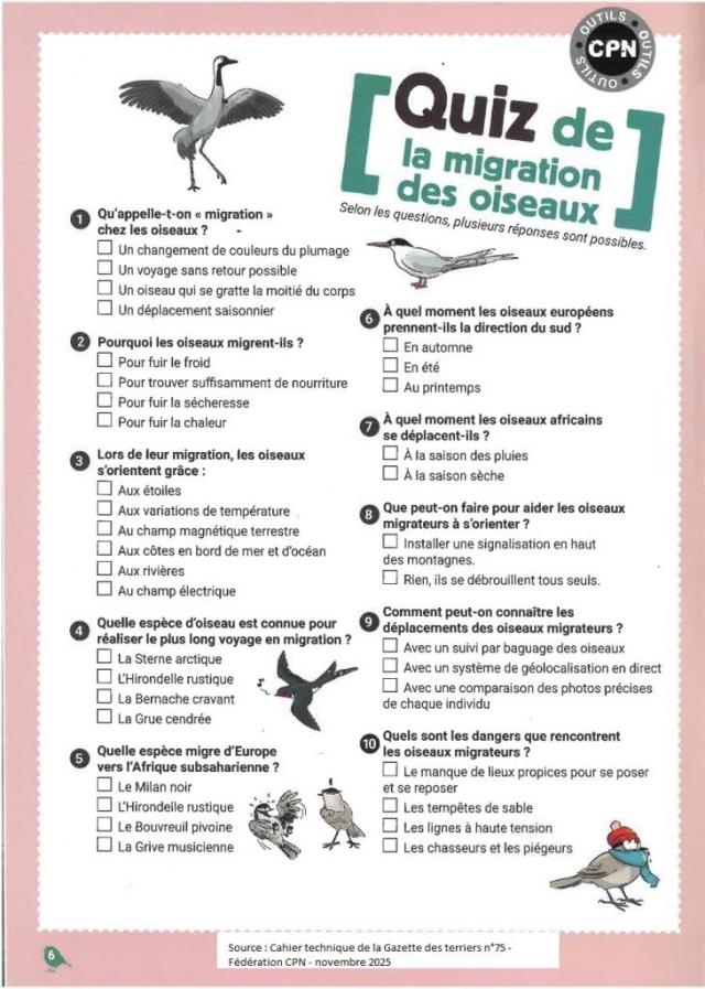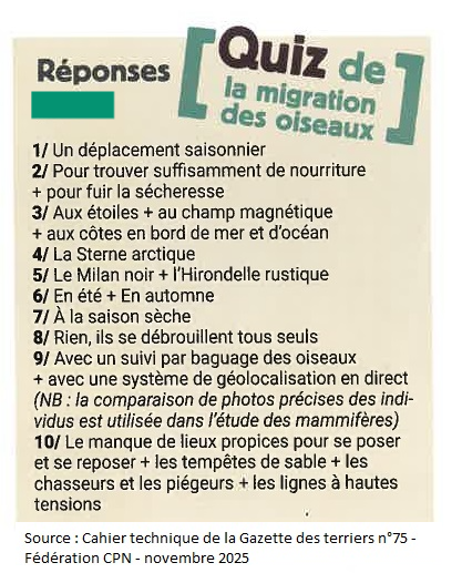L’association propose le QUIZ ci-dessous sur les oiseaux migrateurs